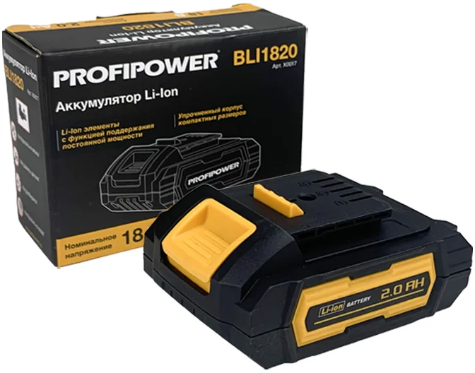 - Аккумулятор PROFIPOWER BLI1820 18V 2.0Ah Li-ion артикул X0017 — это надежный источник энергии для вашего электроинструмента.