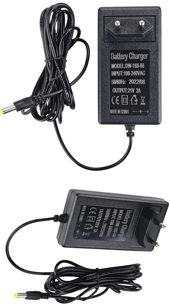 - Зарядка аккумулятора осуществляется с помощью внешнего зарядного устройства, сетевого шнура питания.