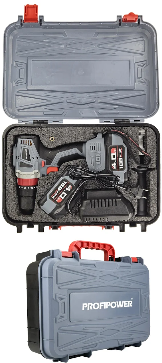 - Аккумуляторная ударная дрель-шуруповерт PROFIPOWER MKDHP-18V, артикул E0087 предназначена для строительных и ремонтных работ, сверления древесины, металлов, керамики и синтетических материалов, для завинчивания или откручивания винтов, нарезания резьбы.