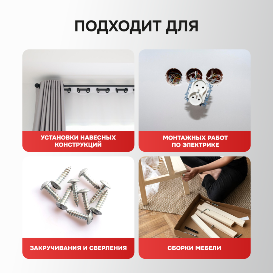 - Многоступенчатая регулировка усилия закручивания для аккуратного обращения.