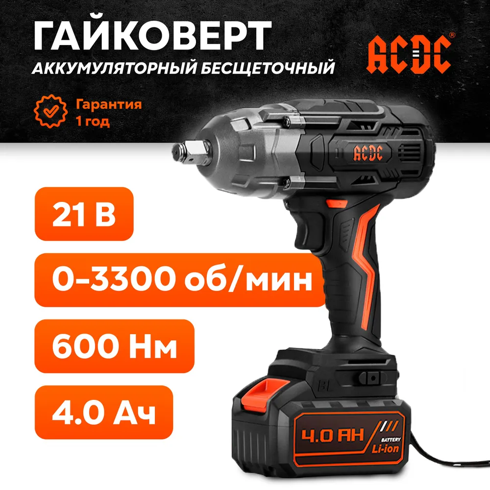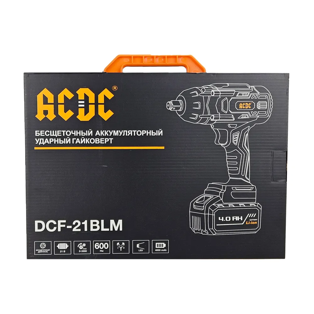 Аккумуляторный бесщеточный гайковерт ACDC DCF-21BLM ONE PLUS (Li-ion-2шт, 4.0Ач, 600Нм, 3300об/мин, З/У, 3 ударная головка, в кейсе), T0073