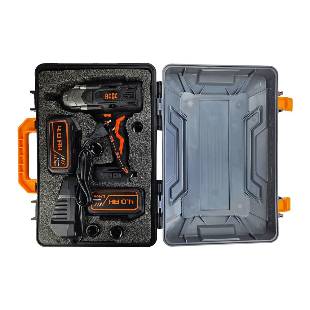 Суперкомплект: гайковерт в сборе, два аккумулятора 4000 mAh 21B , импульсное зарядное устройство, полимерный кейс.