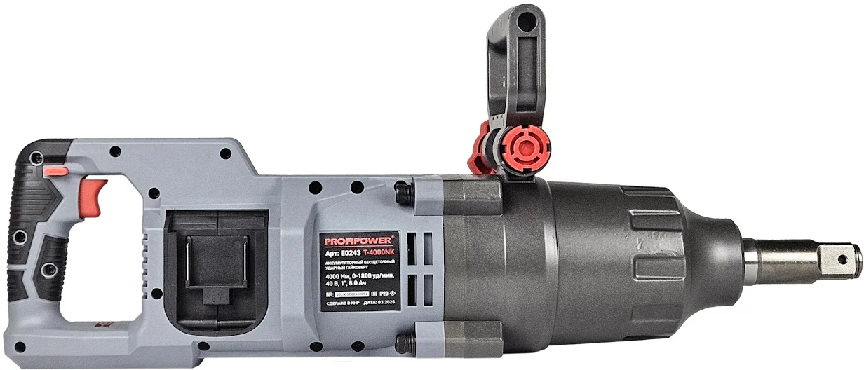 Аккумуляторный бесщеточный ударный гайковерт PROFIPOWER T-4000NK короткий шпиндель (40В, 4000Нм, Li-ion-2шт, 8.0Ач, переходник 1", З/У, в кейсе), E0243