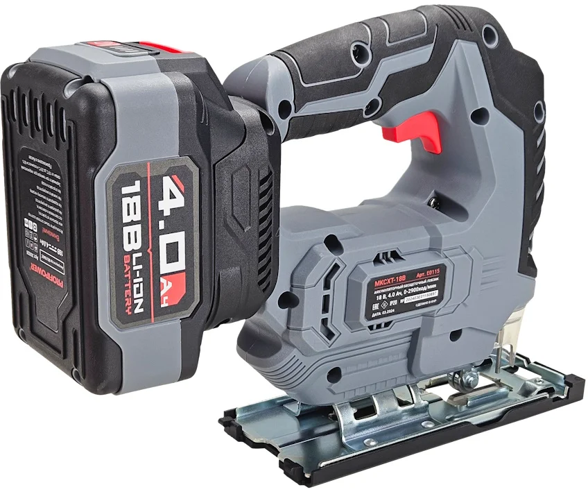 Аккумуляторный бесщеточный лобзик PROFIPOWER MKCXT-18B (18В,Li-ion-1шт, 4.0Ач, 0-2400ход/мин, З/У, в коробке), E0115