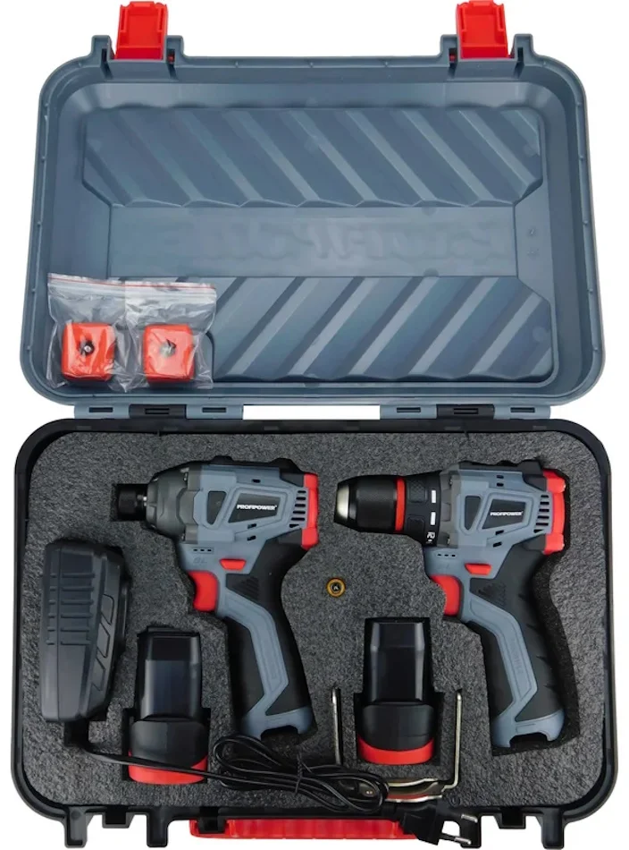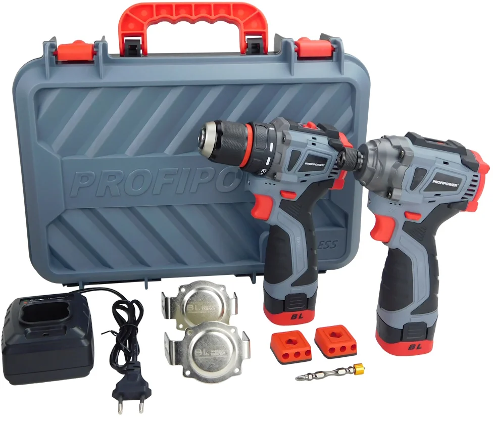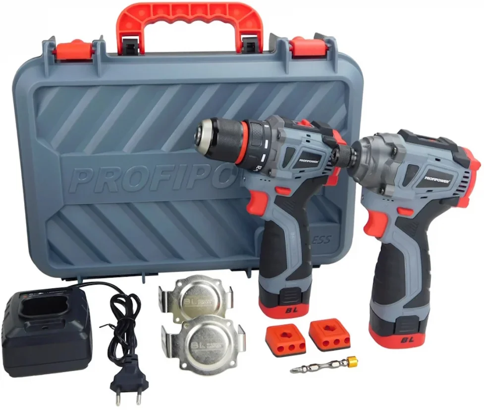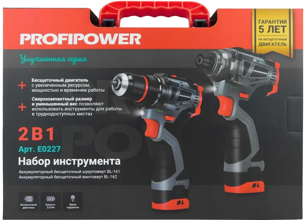 - В набор входит шуруповерт PROFIPOWER BL-161 и винтоверт PROFIPOWER BL-162, 2 аккумулятора, которые оснащены электронной платой управления с защитой от глубокого разряда и перегрева, что продлевает срок службы и увеличивает время работы.