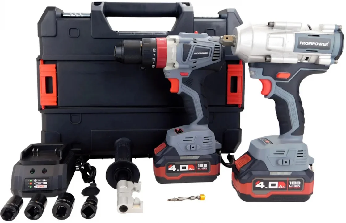 - Универсальный набор аккумуляторного инструмента 2в1 PROFIPOWER ProfiSet 2C18 артикул E0221 c бесщеточными двигателями, которые значительно улучшают характеристики устройств по сравнению с щеточными моделями.