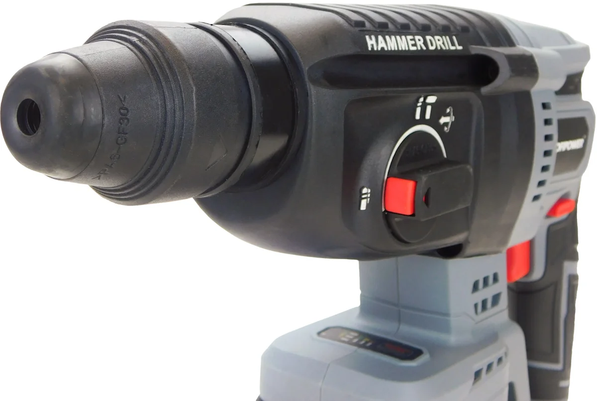 - SDS-Plus патрон и блокировка шпинделя облегчают замену оснастки одной рукой без помощи инструмента.