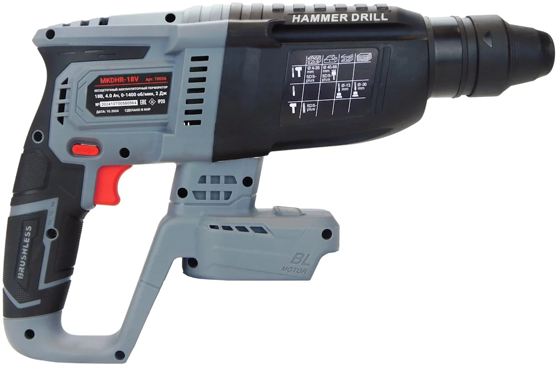 Аккумуляторный беcщеточный перфоратор PROFIPOWER MKDHR-18V (18В, без АКБ, 1,9Дж, 3 режима, в коробке), E0180