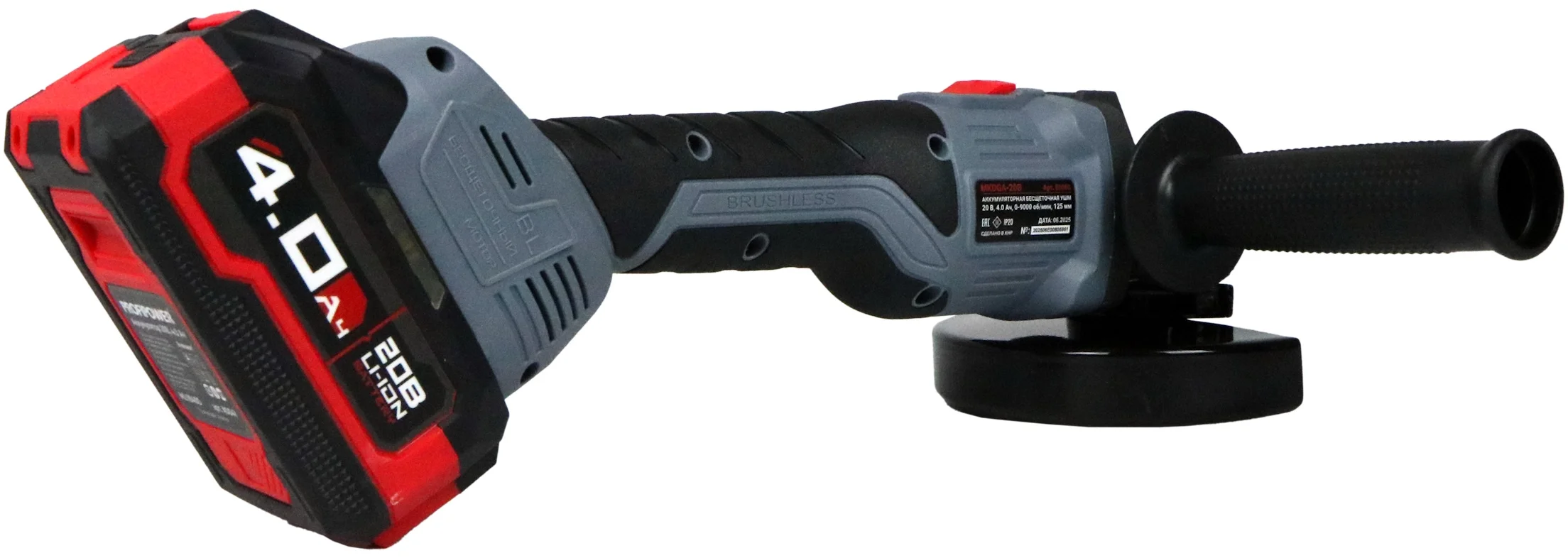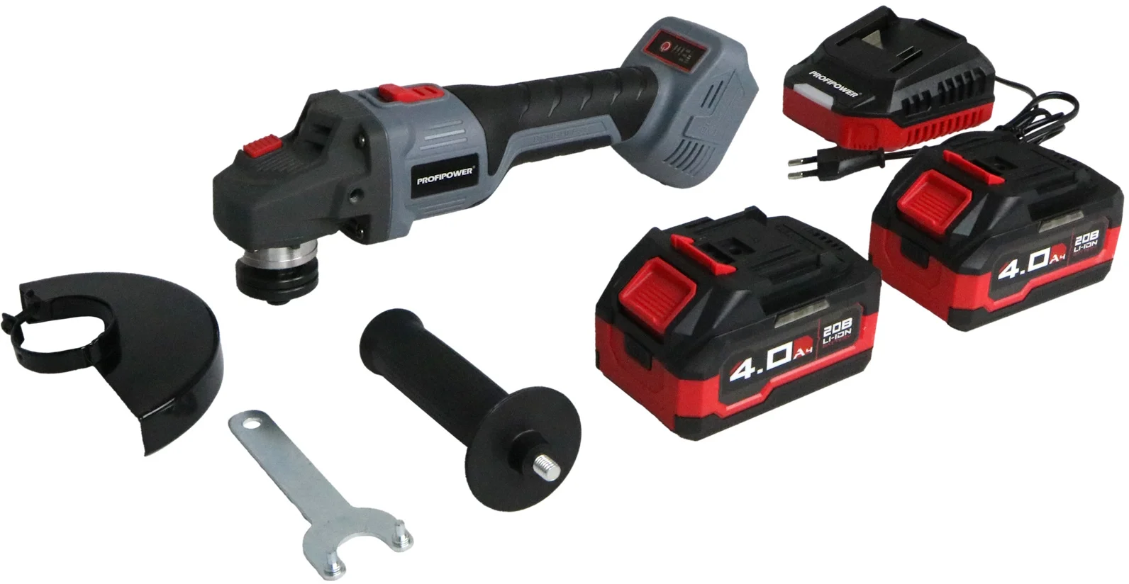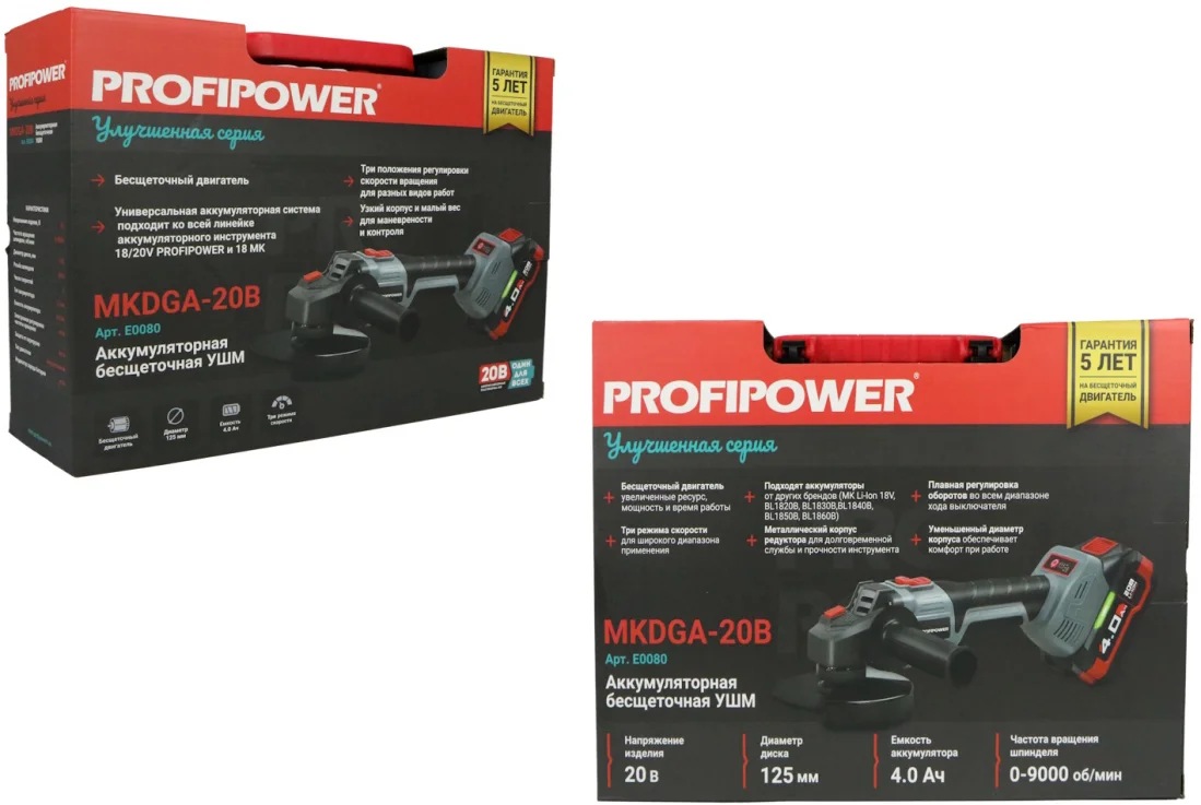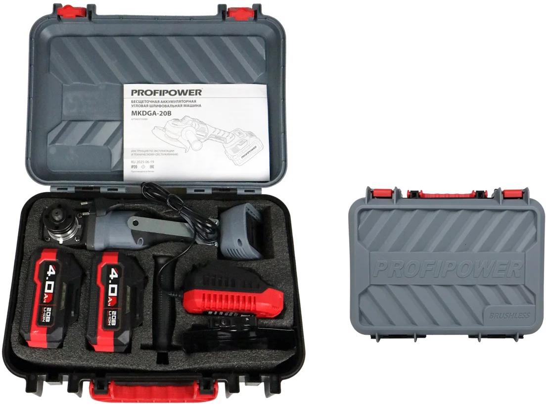 Аккумуляторная бесщеточная УШМ PROFIPOWER MKDGA-20V (20В,Li-ion-2шт, 4Ач, 125 мм, 0-9000 об/мин, З/У, в кейсе), E0080