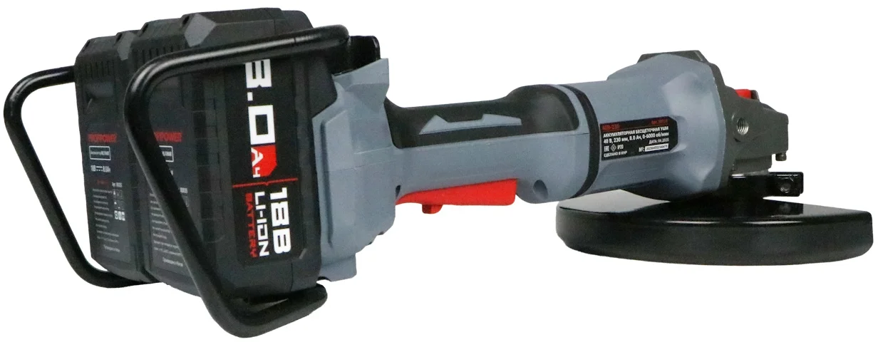 - Аккумуляторная бесщеточная УШМ ProfiPower 40B-230 — инструмент для тяжёлых задач.