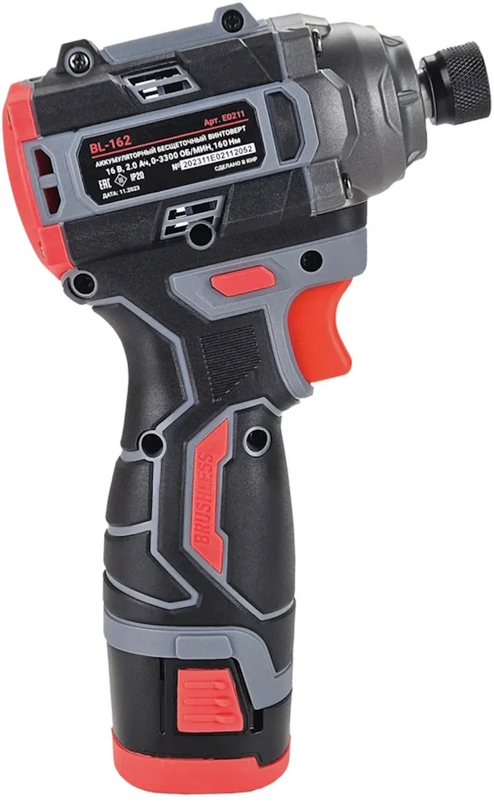 - Винтовёрт аккумуляторный ударный PROFIPOWER BL-162 артикул E0211 с крутящим моментом 160 Нм., бесщеточным двигателем и с двумя Li-ion аккумуляторами 16 В., емкостью 2 А*ч предназначен для работы с резьбовым крепежом (винты, болты и гайки).