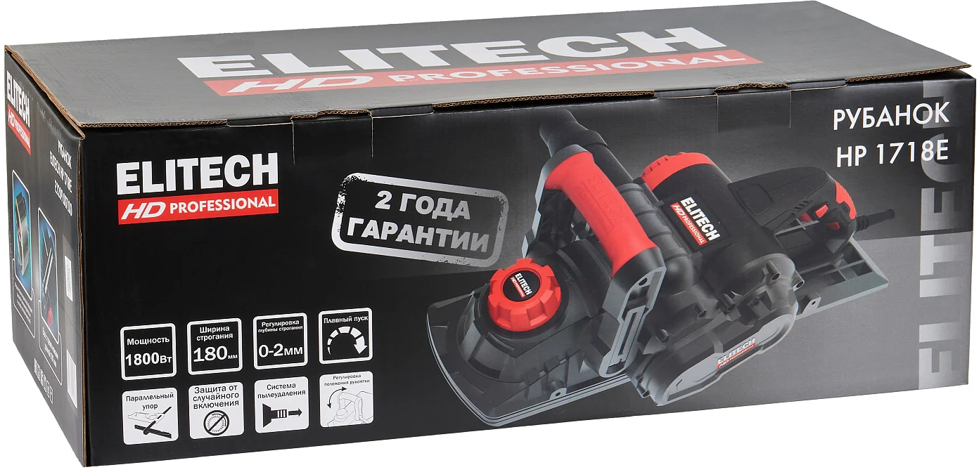 - Рубанок электрический ELITECH HD HP 1718E (E2209.007.00), артикул 205355 предназначен для строгания древесины и производных от нее материалов, выборки четверти, снятия фаски.