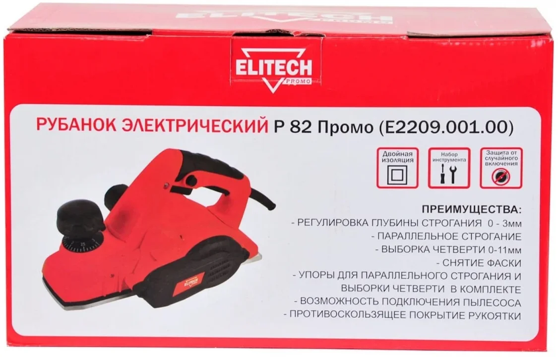 Патрубок для подключения пылесоса обеспечивает сбор стружки в пылесос или выброс в сторону. Плавная регулировка глубины строгания осуществляется путем поворота опорной ручки. V-образный паз в подошве обеспечивает легкое снятие фасок. Кнопка блокировки от случайного включения делает работу оператора безопасной.