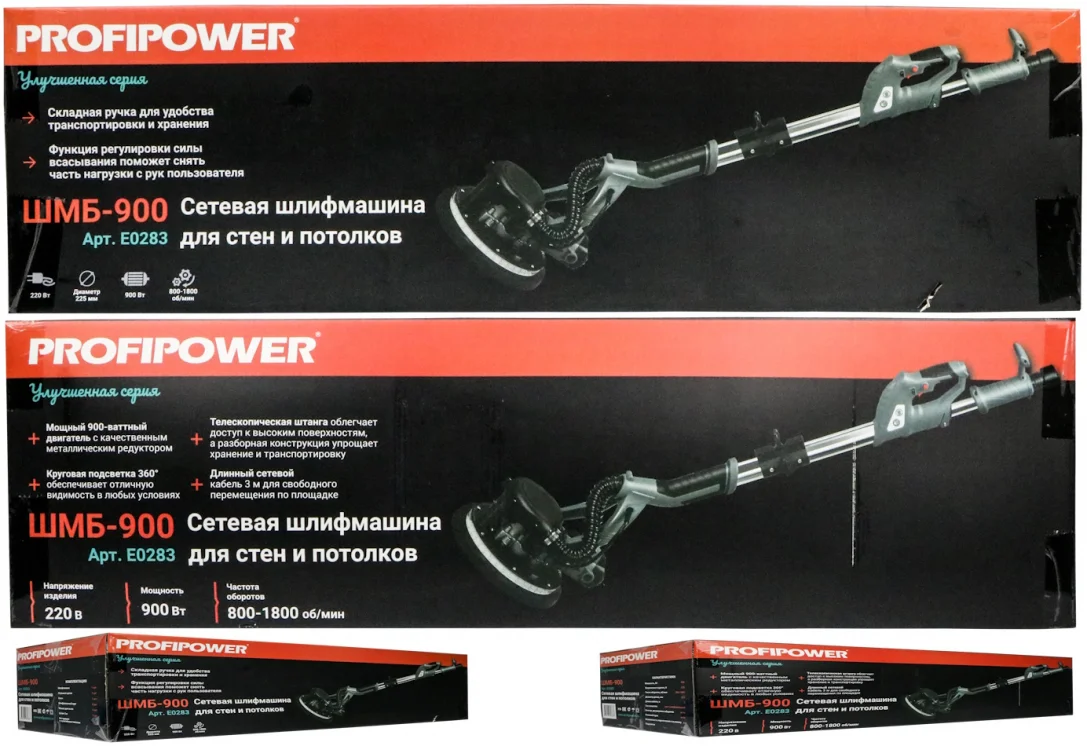 Шлифмашина для стен и потолков с рукояткой 2м PROFIPOWER ШМБ-900, E0283