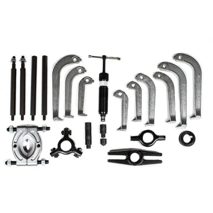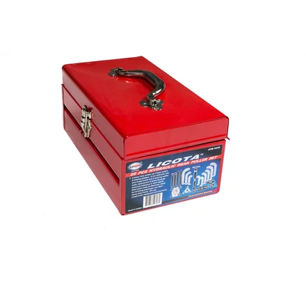 Съемник гидравлический Licota ATB-1075. Набор из 25 предметов с сепаратором и захватами для быстрого демонтажа подшипников, шкивов, втулок и других деталей, имеющих посадку с натягом. Максимальное усилие - 10 тонн.
