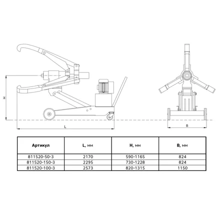 Автоматический съемник с тремя захватами ТЕХРИМ 811520-50-3 на подкатной тележке, с регулируемой высотой съема.