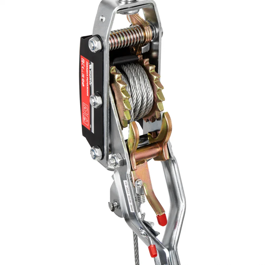 Рычажная лебедка Matrix 52225, развивающая усилие тяги 4 т и подъема — 1,6 т, с двойным храповым колесом, — незаменимое устройство для автомобилистов. С его помощью можно эвакуировать автомобиль в условиях бездорожья и поднимать грузы в горизонтальном и вертикальном направлении при проведении строительных, монтажных, погрузочно-разгрузочных работ. Лебедка с рычажным механизмом проста в использовании и не требует больших усилий от пользователя.