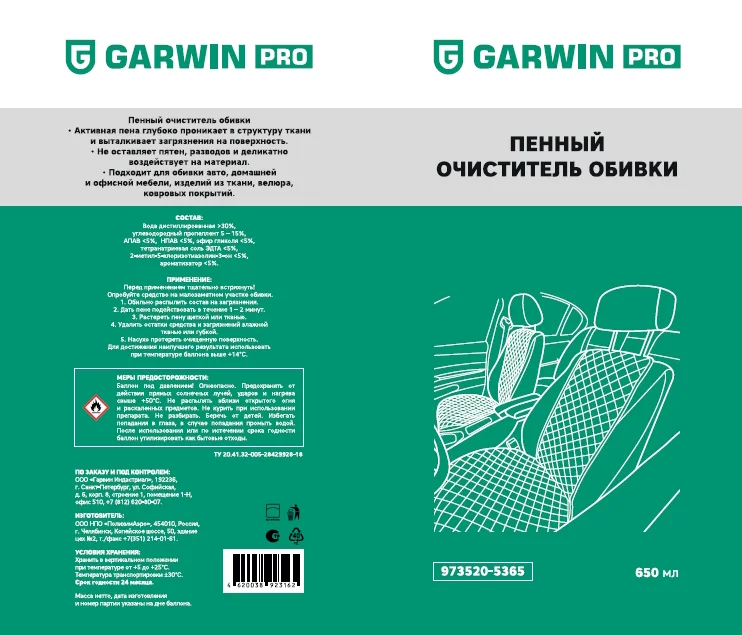 Активная пена глубоко проникает в структуру ткани и выталкивает загрязнения на поверхность. Не оставляет пятен, разводов и деликатно воздействует на материал. Подходит для обивки авто, домашней и офисной мебели, изделий из ткани, велюра, ковровых покрытий.