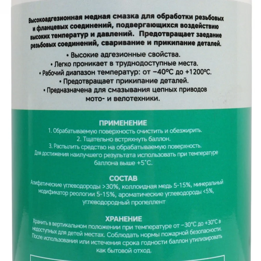 Медные частицы в составе создают устойчивое покрытие, выдерживающее нагрев до 1000°C, что делает смазку идеальной для обработки элементов выхлопной системы.