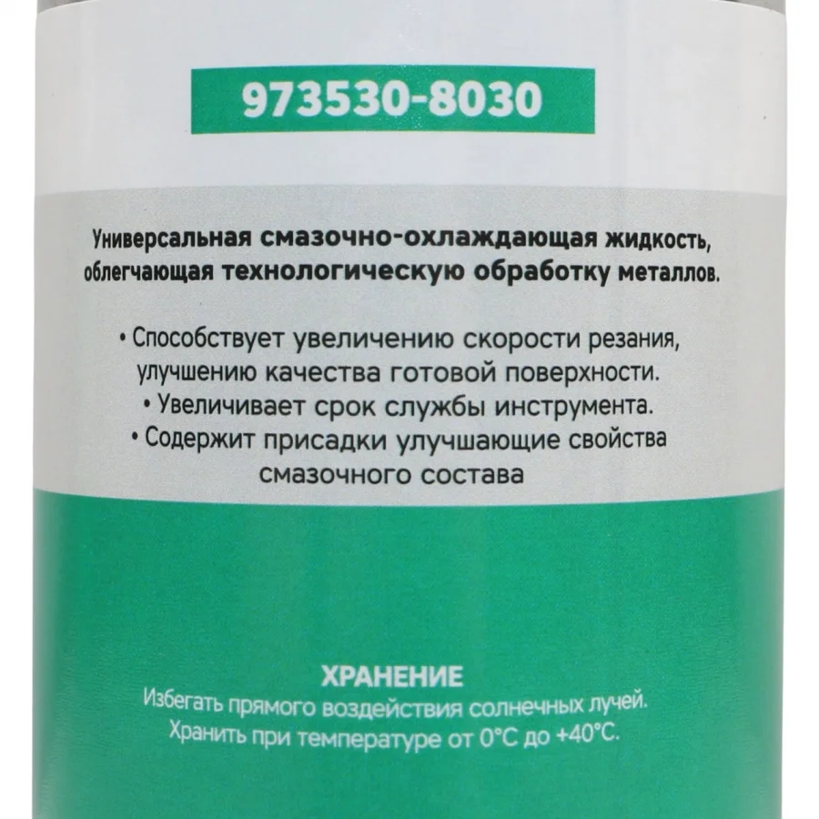 Специализированная смазочно-охлаждающая жидкость (СОЖ) для металлообработки. Предназначено для смазывания режущего инструмента (сверл, метчиков, плашек) при работе с металлами для снижения трения, температуры и износа.