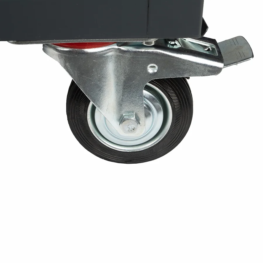 Колёса диаметром 100 мм легко преодолевают неглубокие неровности пола. Для обеспечения безопасности предусмотрена система блокировки колеса, которая позволяет на время зафиксировать тележку.