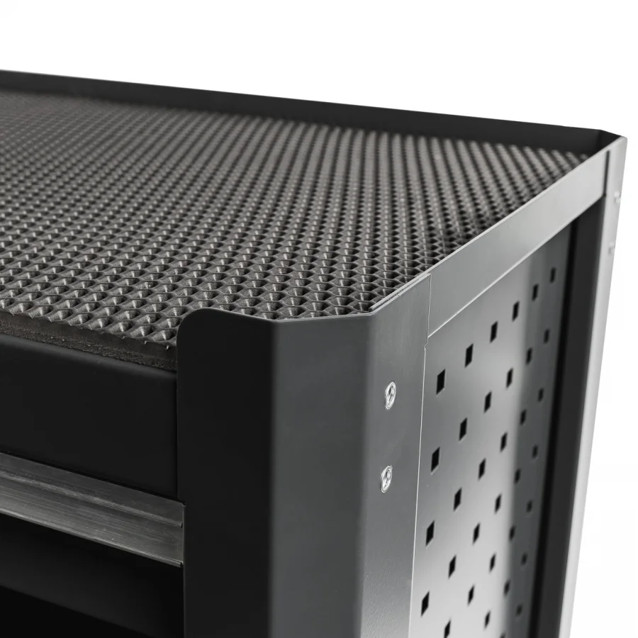 Телескопические направляющие с доводчиками обеспечивают лёгкое и бесшумное выдвижение ящиков с полной выкаткой. Текстурные ручки ящиков для удобного использования в перчатках. Центральный замок для защиты содержимого от несанкционированного доступа. Толщина металла — 1.5 мм, что гарантирует прочность конструкции и долговечность в условиях интенсивной эксплуатации.