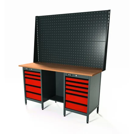 RUNTEC RTS16F-TS5-TS6-P16-P16-3020 Верстак серии Standart, 1600 мм, фанера, тумба с 5-ю ящиками + тумба с 6-ю ящиками, экран 1000, красный RAL 3020