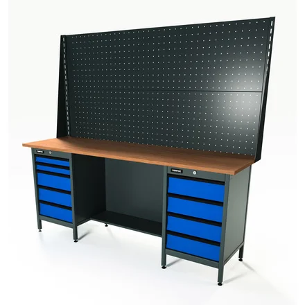 RUNTEC RTS20F-TS4-TS5-P20-P20-5005 Верстак серии Standart, 2000 мм, фанера, тумба с 4-мя ящиками + тумба с 5-ю ящиками, экран 1000, синий RAL 5005