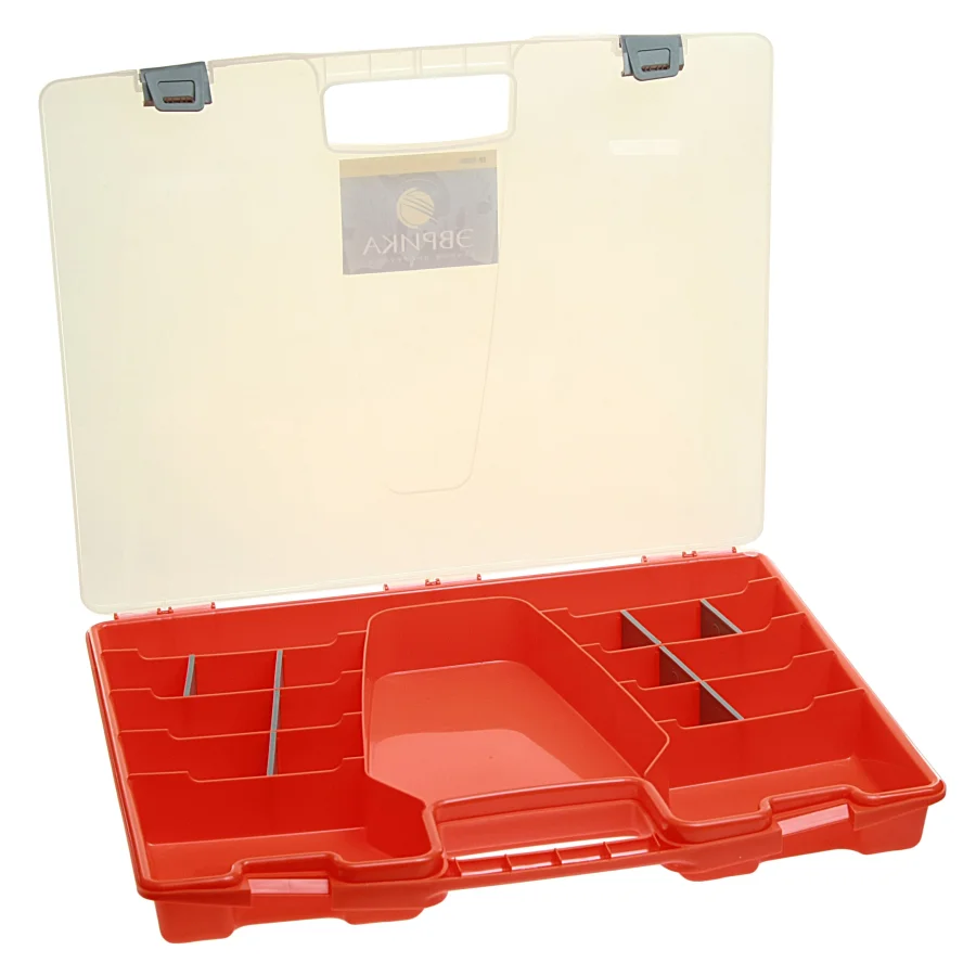 Бокс универсальный ER-10305 со сменными вставками это ваш надежный помощник в организации пространства и идеальное решение для хранения инструментов и мелочей. Его размеры делают его компактным и удобным для использования как в домашних условиях, так и в гараже. Пластиковый ящик станет отличным органайзером для инструментов, позволяя вам легко находить все необходимое. Бокс можно использовать для хранения различных инструментов, украшений, швейных принадлежностей. В нем удобно разместить полезные мелочи, которые всегда должны быть под рукой. Прозрачный корпус позволяет быстро находить нужный предмет, не тратя время на поиски. Такой контейнер органайзер станет отличным дополнением к вашему набору инструментов, будь то для бытовых нужд или профессиональной деятельности. Для мужчин, которые ценят порядок в гараже, этот ящик для инструментов станет незаменимым аксессуаром. Он подходит не только для хранения инструментов, но и для организации пространства в автомобиле. Вы можете легко взять его с собой в поездки или использовать в качестве ящика для хранения в машине. Такой подход позволит вам всегда иметь под рукой набор инструментов, необходимых для мелкого ремонта или обслуживания. Пластиковый бокс — это не просто ящик для хранения, это система, которая поможет вам навести порядок в вашем рабочем пространстве. Он отлично подойдет для хранения строительных инструментов и станет идеальным решением для организации рабочего места. Благодаря прочному материалу, этот контейнер для инструментов прослужит вам долго, сохраняя свои функциональные качества. Бокс универсальный со сменными вставками 460х360х50 мм ЭВРИКА ER-10305.