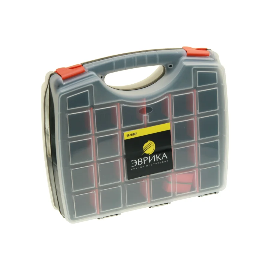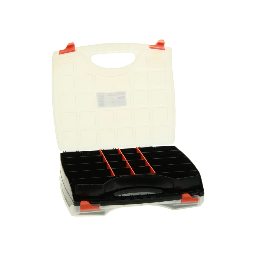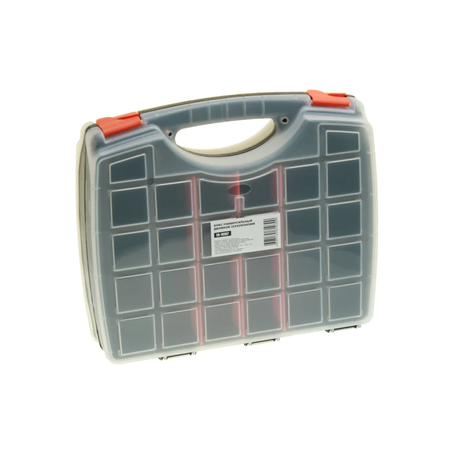 Бокс универсальный ER-10307 двойной 325×280×85мм используется для удобства хранения и транспортировки крепежа и других мелочей, необходимых при выполнении монтажа. Изделие выполнено из прочного и удароустойчивого пластика, имеет прозрачную крышку. Размеры Органайзера делают его компактным и удобным для использования как в домашних условиях, так и в гараже. Пластиковый ящик станет отличным органайзером для инструментов, позволяя вам легко находить все необходимое. Бокс можно использовать для хранения различных инструментов, украшений, швейных принадлежностей. В нем удобно разместить полезные мелочи, которые всегда должны быть под рукой. Прозрачный корпус позволяет быстро находить нужный предмет, не тратя время на поиски. Такой контейнер органайзер станет отличным дополнением к вашему набору инструментов, будь то для бытовых нужд или профессиональной деятельности. Для мужчин, которые ценят порядок в гараже, этот ящик для инструментов станет незаменимым аксессуаром. Он подходит не только для хранения инструментов, но и для организации пространства в автомобиле. Вы можете легко взять его с собой в поездки или использовать в качестве ящика для хранения в машине. Такой подход позволит вам всегда иметь под рукой набор инструментов, необходимых для мелкого ремонта или обслуживания. Пластиковый бокс — это не просто ящик для хранения, это система, которая поможет вам навести порядок в вашем рабочем пространстве. Он отлично подойдет для хранения строительных инструментов и станет идеальным решением для организации рабочего места. Благодаря прочному материалу, этот контейнер для инструментов прослужит вам долго, сохраняя свои функциональные качества.