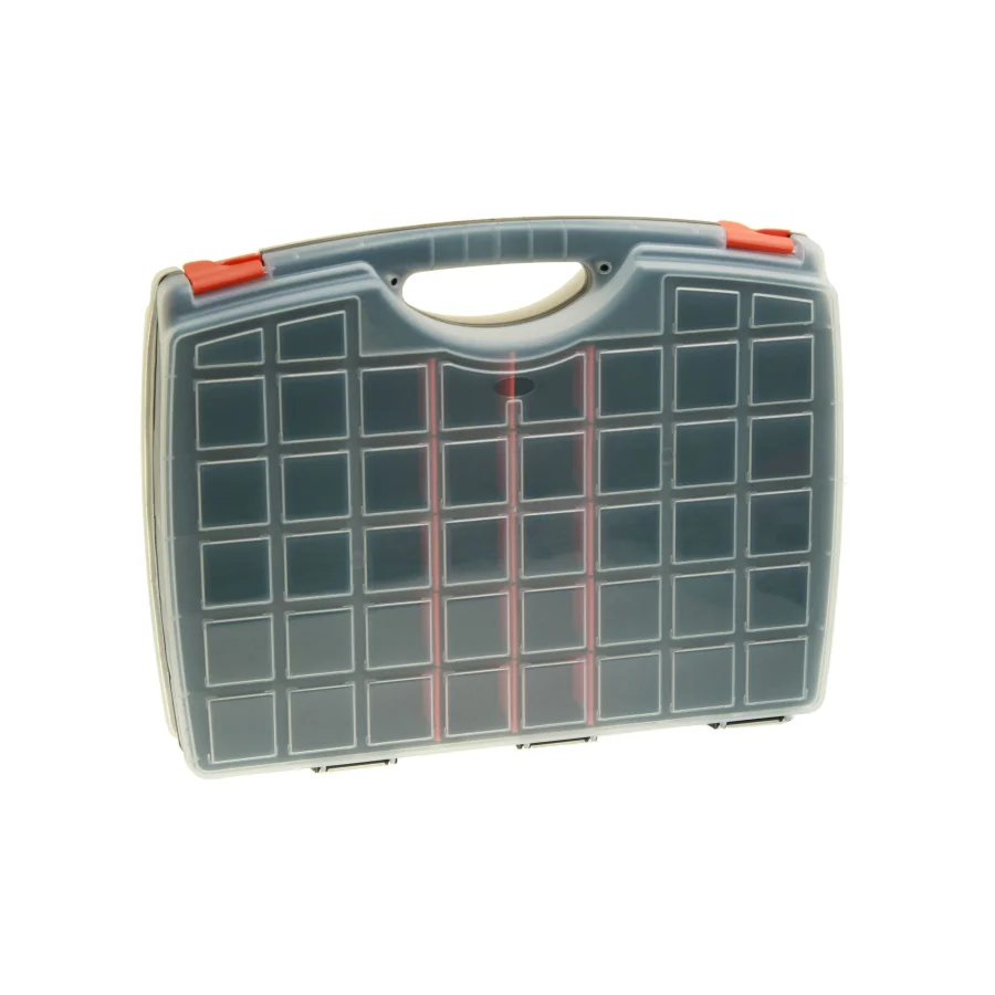 Бокс универсальный ER-10308 двойной используется для удобства хранения и транспортировки крепежа и других мелочей, необходимых при выполнении монтажа. Изделие выполнено из прочного и удароустойчивого пластика, имеет прозрачную крышку. Его размеры делают его компактным и удобным для использования как в домашних условиях, так и в гараже. Пластиковый ящик станет отличным органайзером для инструментов, позволяя вам легко находить все необходимое. Бокс можно использовать для хранения различных инструментов, украшений, швейных принадлежностей. В нем удобно разместить полезные мелочи, которые всегда должны быть под рукой. Прозрачный корпус позволяет быстро находить нужный предмет, не тратя время на поиски. Такой контейнер органайзер станет отличным дополнением к вашему набору инструментов, будь то для бытовых нужд или профессиональной деятельности. Для мужчин, которые ценят порядок в гараже, этот ящик для инструментов станет незаменимым аксессуаром. Он подходит не только для хранения инструментов, но и для организации пространства в автомобиле. Вы можете легко взять его с собой в поездки или использовать в качестве ящика для хранения в машине. Такой подход позволит вам всегда иметь под рукой набор инструментов, необходимых для мелкого ремонта или обслуживания. Пластиковый бокс — это не просто ящик для хранения, это система, которая поможет вам навести порядок в вашем рабочем пространстве. Он отлично подойдет для хранения строительных инструментов и станет идеальным решением для организации рабочего места. Благодаря прочному материалу, этот контейнер для инструментов прослужит вам долго, сохраняя свои функциональные качества.