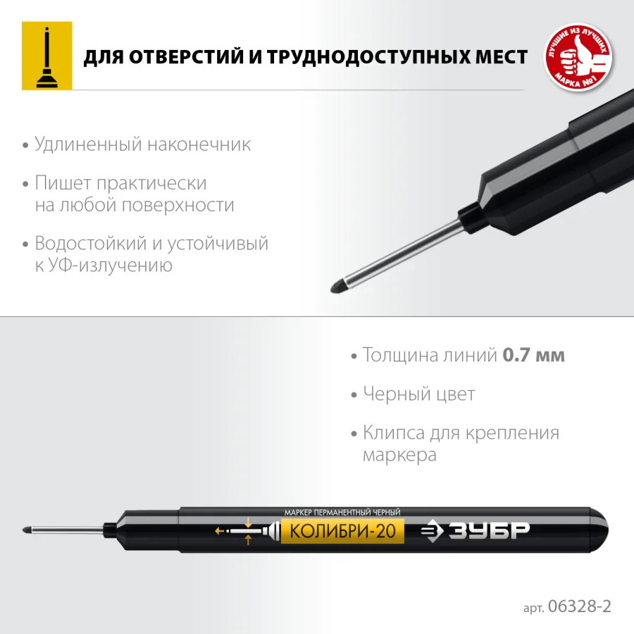 Удлиненный наконечник маркера позволяет наносить пометки сквозь небольшие отверстия. Перманентный маркер пишет практически на любой поверхности, применяется в различных сферах, где требуется разметить отверстие или сделать пометку сквозь небольшое отверстие