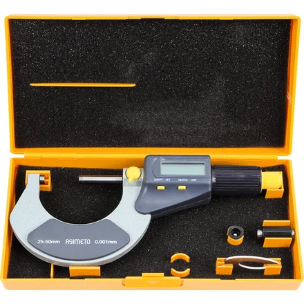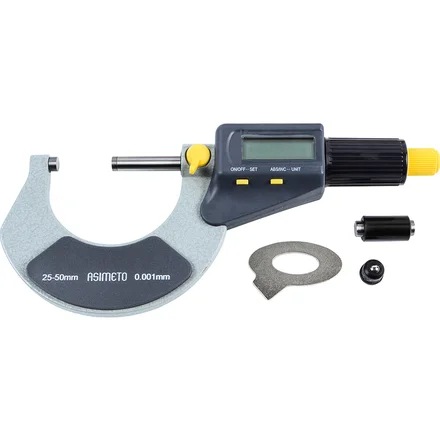 Микрометр гладкий цифровой для наружных измерений Asimeto 116-02-0-П - универсальный прибор для измерений линейных размеров абсолютным или относительным контактным методом с низкой погрешностью в области малых размеров. Преобразовательным механизмом является микропара “винт - гайка”.