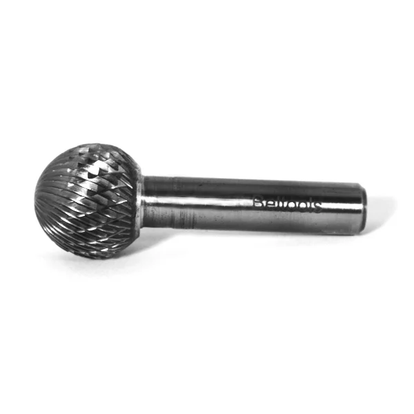 Борфреза сферическая твердосплавная с диаметром фрезы Dc 22 мм и диаметром хвостовика D2 - 10 мм, Х-образная насечка. Изготовлена из сплава ВК8. Сферические борфрезы применяются так же для зачистки сварных швов, обработки фасонных поверхностей, поднутрений и для работы в труднодоступных местах. Х-образная насечка позволяют достичь более ровной поверхности, нежели борфрезы с одинарной насечкой, поскольку снимают материал с образованием более мелкой стружки и позволяет применять борфрезу для тонкой финишной обработки и выравнивания поверхностей.