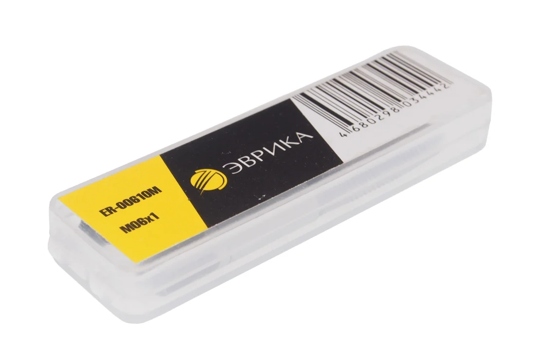 Метчик M06x1 2шт, в пластиковом футляре ЭВРИКА ER-00610M представляет собой пару инструментов для сквозных и глухих отверстий. Модель позволяет быстро нарезать резьбу с эффективным отводом стружки на всей протяженности рабочей зоны.