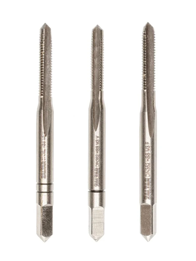 Каждый комплект состоит из трёх метчиков: чернового, получистового, чистового