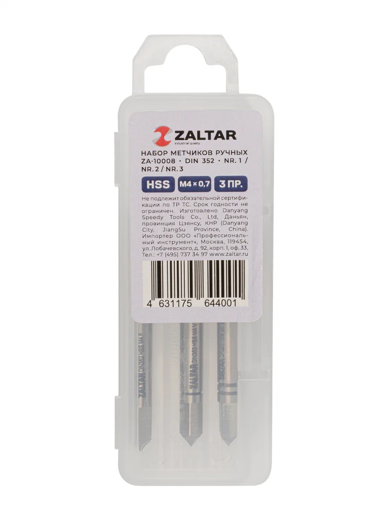 Набор метчиков ручных HSS DIN 352, 3 пр., Nr.1/Nr.2/Nr.3, M4 x 0.7
