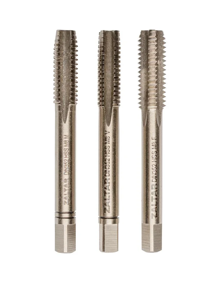 Каждый комплект состоит из трёх метчиков: чернового, получистового, чистового