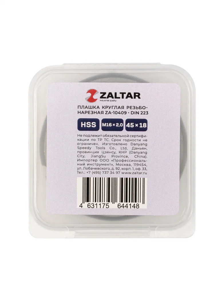 Плашка круглая резьбонарезная HSS, DIN 223 B (DIN EN 22568), M16 x 2.0, 45 x 18