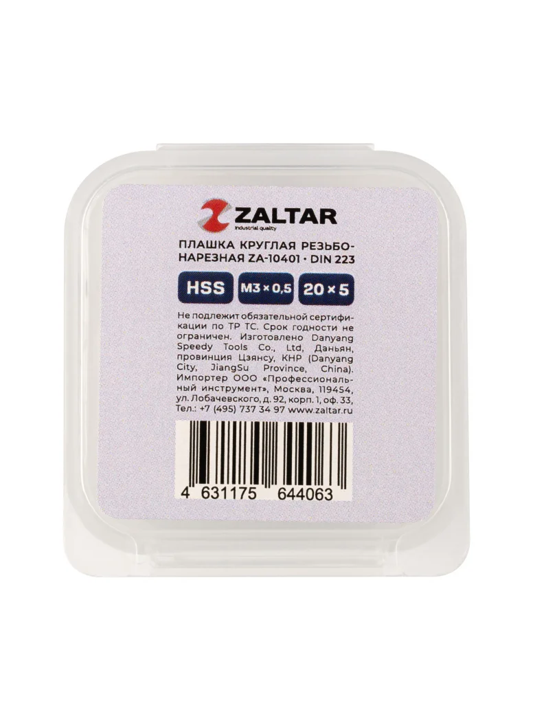 Плашка круглая резьбонарезная HSS, DIN 223 B (DIN EN 22568), M3 x 0.5, 20 x 5
