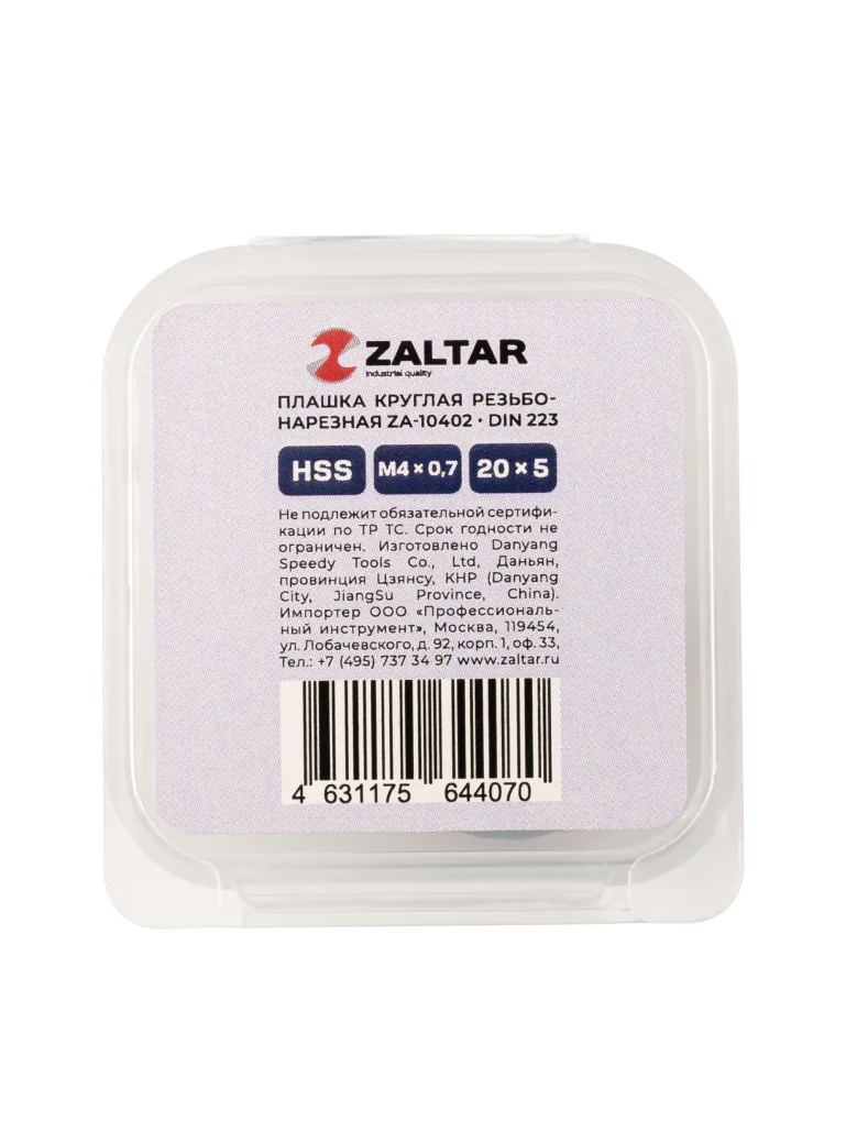 Плашка круглая резьбонарезная HSS, DIN 223 B (DIN EN 22568), M4 x 0.7, 20 x 5