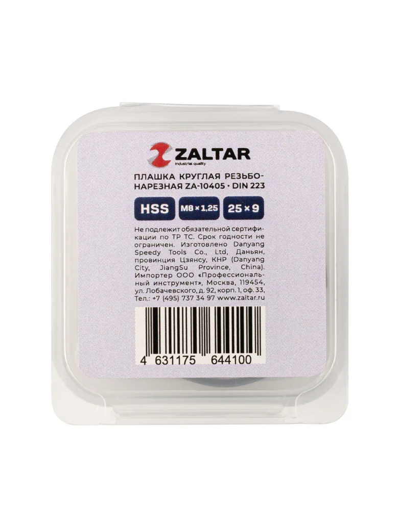Плашка круглая резьбонарезная HSS, DIN 223 B (DIN EN 22568), M8 x 1.25, 25 x 9