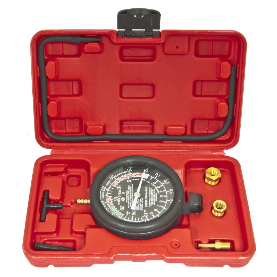 Тестер давления масла ER-86310 в наборе с резьбовыми адаптерами 3пр., (0-7bar), в кейсе ЭВРИКА /1/20