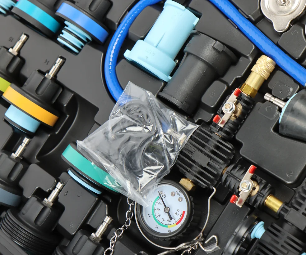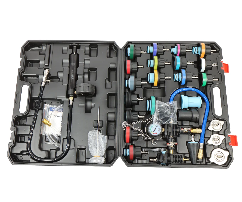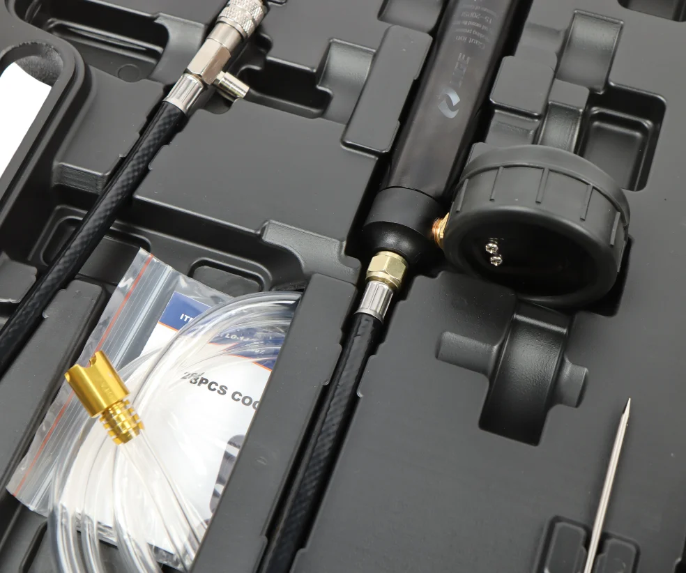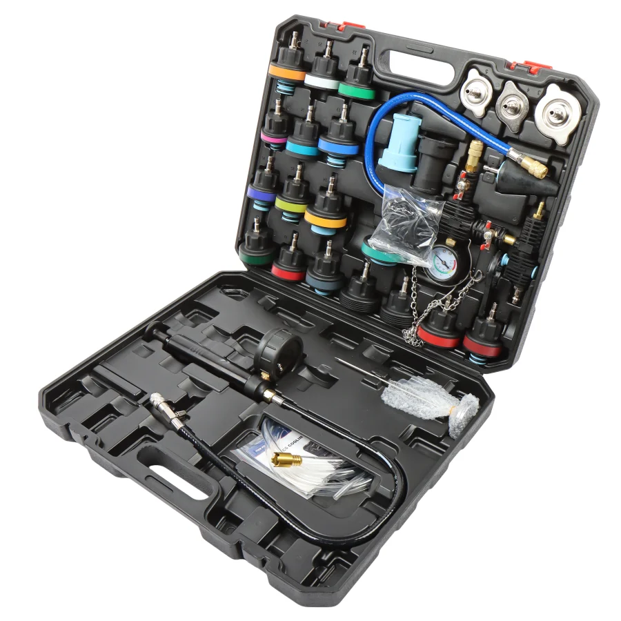 "Диапазон: 0-2,5 бар/0-200 °C Применимые модели: Volkswagen, Audi, BMW, Mercedes-Benz, Cadillac, Volvo, Tesla, Porsche 718, BYD Rangoon и большинство других моделей Насос; колпачки 3-5; 6-22; уплотнительное кольцо; конический адаптер; воздушный шланг (∅8x12x750 мм); шланг для охлаждающей жидкости (1500 мм) "