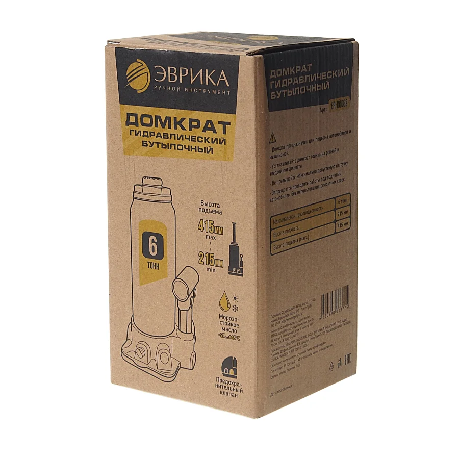 Гидравлический бутылочный домкрат ER‑80062 «ЭВРИКА»: подъёмник на 6 т для профессионального использования