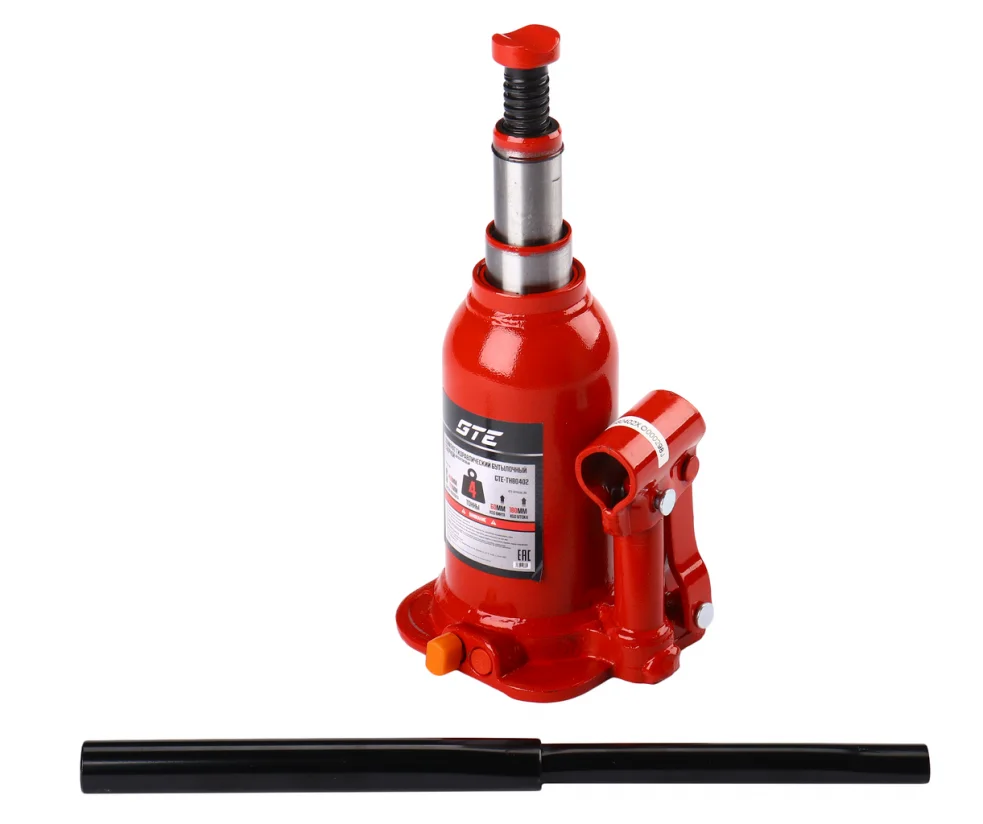 Домкрат бутылочный GTE‑TH80402, 4 т, 170–410 мм, двухплунжерный