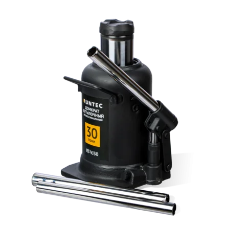 Бутылочный домкрат является важным инструментом, который может использоваться не только в автомастерских и гаражах, но и в других сферах, где требуется подъем различных грузов. Поставляется с телескопической ручкой.