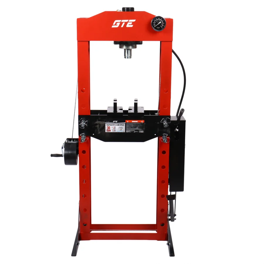Регулируемый стол способствует удобству эксплуатации. Пресс оснащается глицеринозаполненным манометром диаметром для визуального контроля рабочего давления. Управление прессом осуществляется вручную. Автоматический возврат штока экономит время и силы оператора.