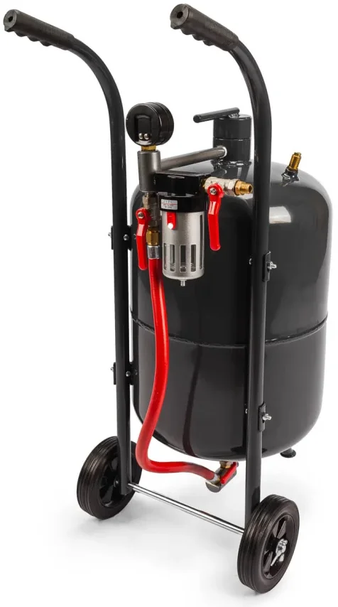 Пескоструйные аппараты предназначены для очистки воздушно-пескоструйным способом внутренних и наружных поверхностей от старой краски, ржавчины, окалины, различного рода загрязнений, обезжиривания поверхностей при ремонте зданий, а также для подготовки поверхности под покраску при ремонтных работах на энергетических, судоремонтных, автомобильных сервисах и других ремонтных и производственных предприятиях. В комплект входит пистолет с комплектом форсунок, шланг, воронка для загрузки абразива и маска. Для подключения потребуется компрессор. Применяемый абразив: песок речной, кварцевый песок, электрокорунд.
