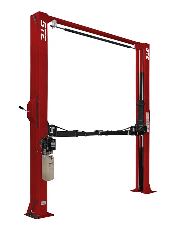 Подъемник двухстоечный красный 4т с верхней синхронизацией 220В (электрический спуск), GTE-B203
